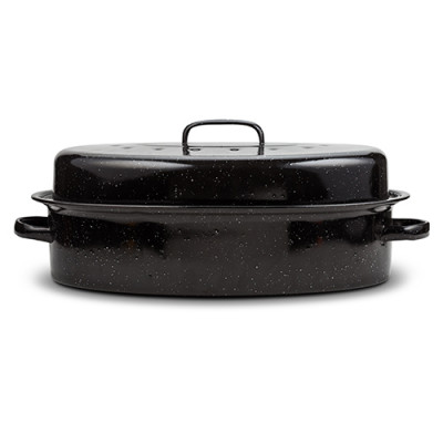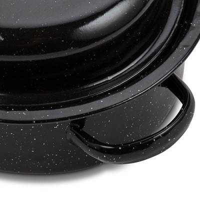 Γάστρα οβάλ εμαγιέ με καπάκι. Η εμαγιέ γάστρα είναι ένα ιδανικό σκεύος για μαγείρεμα στο φούρνο. Το εμαγιέ είναι ένα υλικό το οποίο θερμαίνεται γρήγορα και ψύχεται αργά διατηρώντας το μαγειρεμένο φαγητό ζεστό για περισσότερο χρόνο. Διανέμει ομοιόμορφα τη θερμότητα κατά το ψήσιμο. Έχει μεγάλη αντοχή στα γδαρσίματα, στις υψηλές θερμοκρασίες, είναι ελαφριά και εύκολη στο καθάρισμα. Κατάλληλη για πλυντήριο πιάτων.